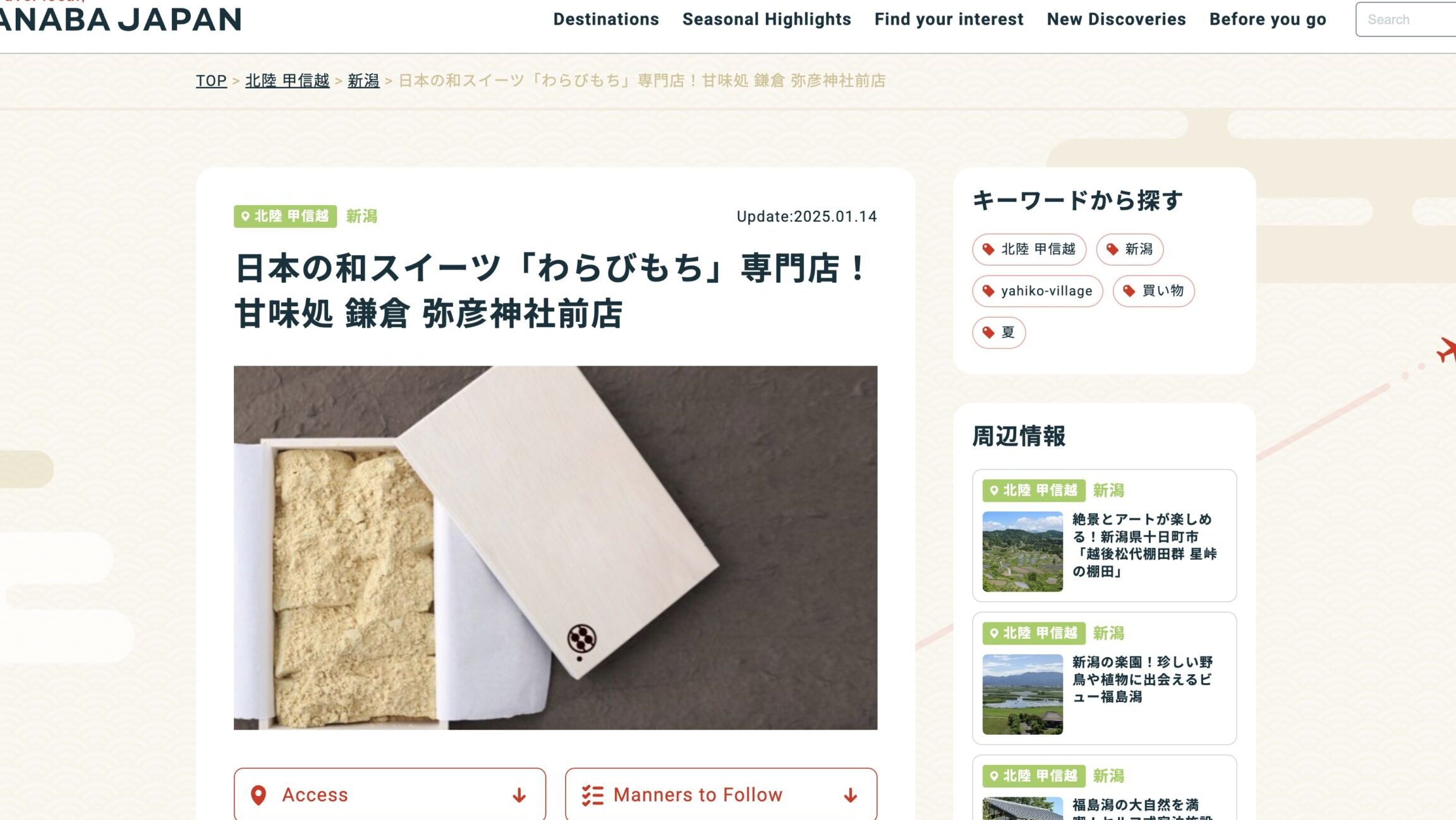 弥彦 わらび餅の歴史と楽しみ方について